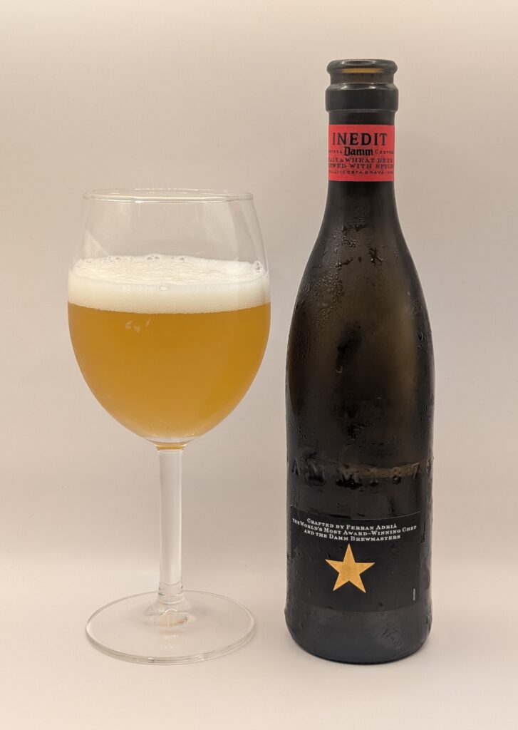 今宵のビールは、「イネディット・ダム」です。先日取り上げた、スペインのビール、ダウラ・ダムを手がけるダム社のビールです。「ビール界のドンペリ」とのフレコミに惹かれ購入しました。