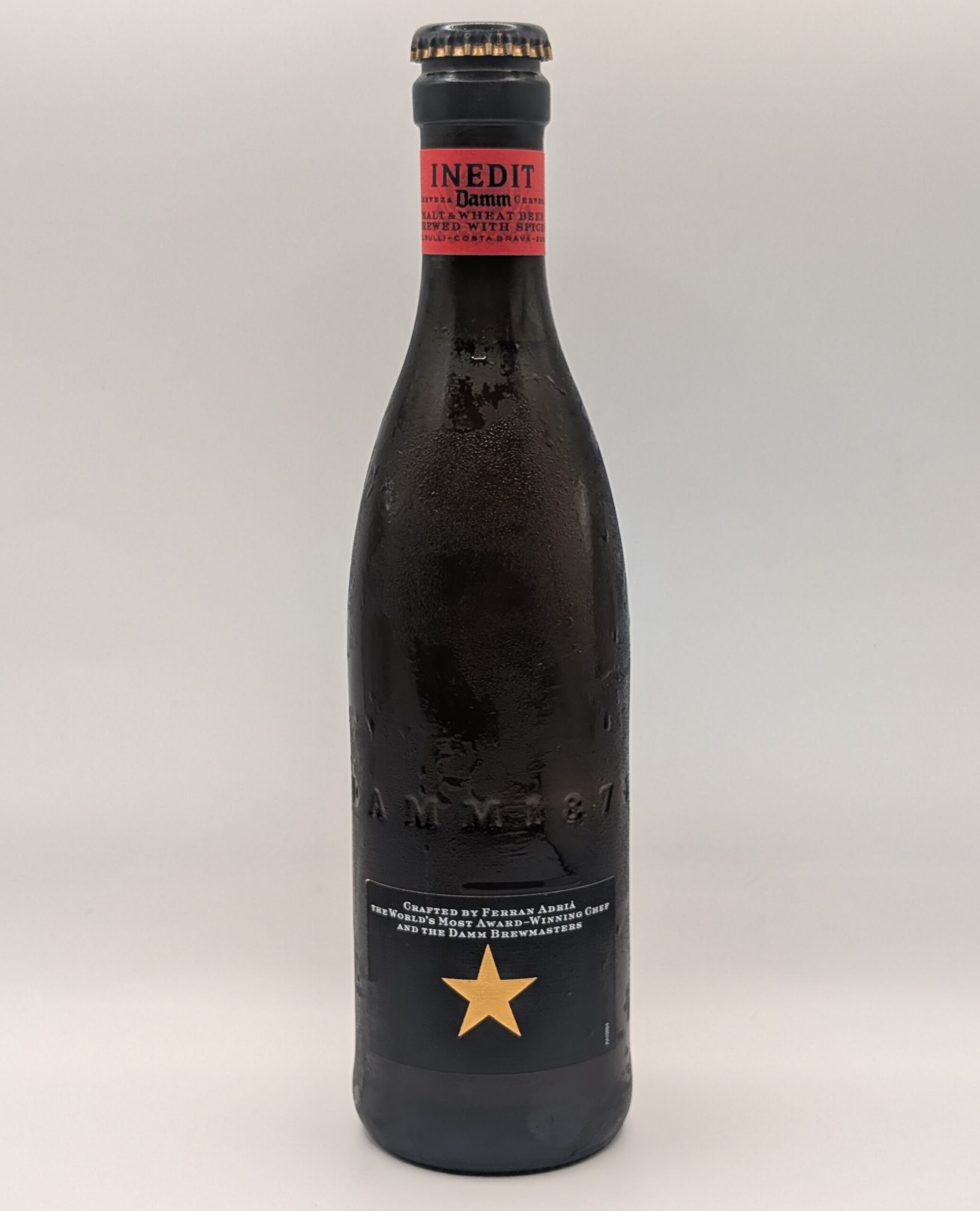 「世界で最も、多くの賞に輝くシェフ、フェラン・アドリアとダム社のビールマイスターが生んだ麦芽&小麦の独創的なビール」(瓶裏面ラベル)